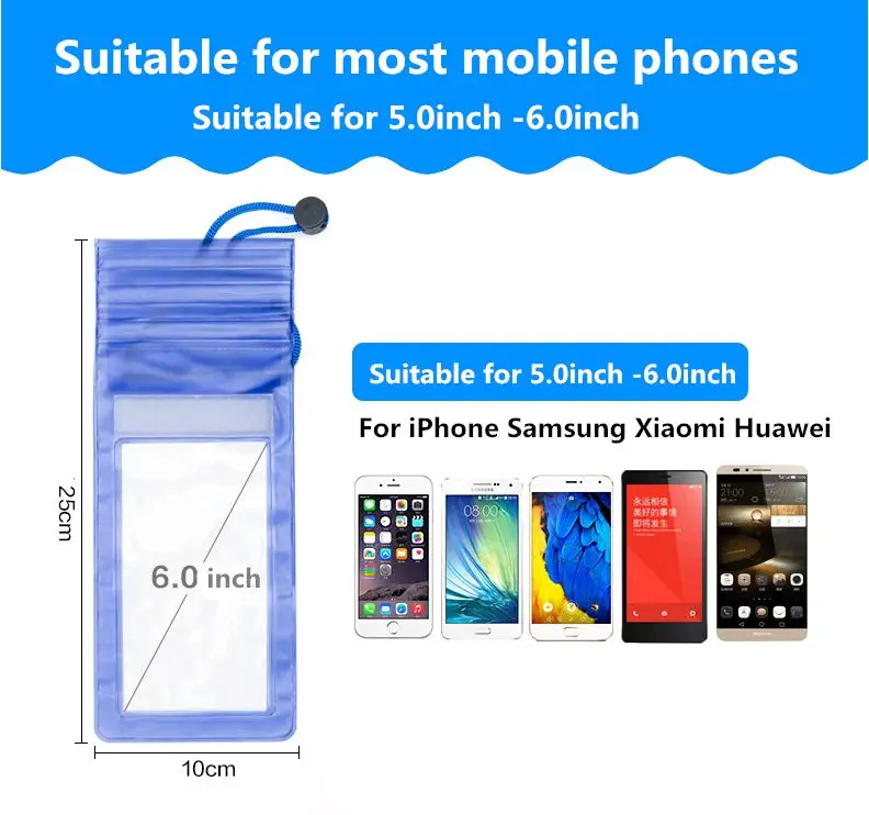 Waterproof Underwater PVC Package Pouch Diving Bags For iPhone Outdoor Mobile Phone Pocket Case For Samsung Xiaomi HTC Huawei : Click Here Olaf universal Swimming Bags Waterproof Bag Underwater Pouch Phone Case For iphone 7 8 Plus Samsung Xiaomi LG 3.5 inch -5.8 inch : Click Here Olaf Universal Waterproof bag For iphone X 7 8 6 6s plus 5 5s se Mobile Phone Pouch Swim Waterproof Cases for Samsung xiaimi : Click Here